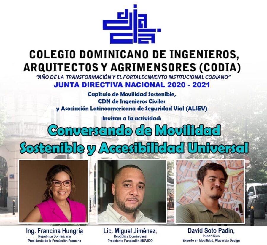 Plusurbia's mobility expert, David Soto, participated in a forum convened by the Dominican College of Engineers, Architects and Surveyors (CODIA) with the topic of Universal Mobility and Accessibility, with the support of the Latin American Road Safety Association and sponsored by the CDN of Civil Engineers and the Sustainable Mobility Chapter. David discussed the progress made on this issue in Puerto Rico and Florida where we advance cycling infrastructure and public transport projects.Listen to the conversation at any time here:https://www.youtube.com/watch?v=lkM9W5HKZas&feature=youtu.be