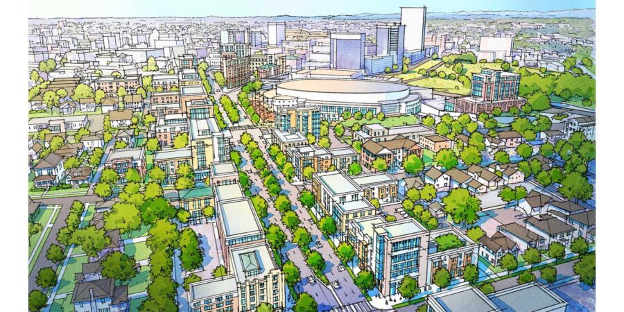 February 24, 2022Plusurbia, the Miami-based urban design group leading the Greenville Gateway master plan project, this week unveiled a reimagined gateway into downtown. Built on community input gathered over several days, the concepts include pedestrian-friendly pathways and greenspace, restaurants, entertainment, sports, and mixed-use developments.The plan was constructed around six key principles: connect, protect, calibrate, reinvest, enhance, and collaborate.The presentation followed four days of public charrettes and open studio hours, during which residents, elected officials, business leaders, and designers gathered to submit ideas. Plusurbia compiled the input into a set of initial concepts for the area that includes East North Street, the Bon Secours Wellness Arena, the Greenville County Law Enforcement Center, Lavinia Street, East Park Avenue, and the Pettigru Historic District.The project spearheaded by DOM360’s Robert and Jennifer Donovan collected 400 survey responses in addition to the input from the charrettes’ attendees.The designers from Plusurbia will continue to collect input from stakeholders via an online survey on the project website at GatewayGreenville.com. Over the next two months, the group will work closely with the city and county to ensure Plusurbia’s recommendations dovetail with the agencies’ current work.Plusurbia will provide recommendations to the City of Greenville by May with the goal of creating a report of stakeholders’ visions and desires for the area that can help guide decision-making for the Greenville Gateway’s future.