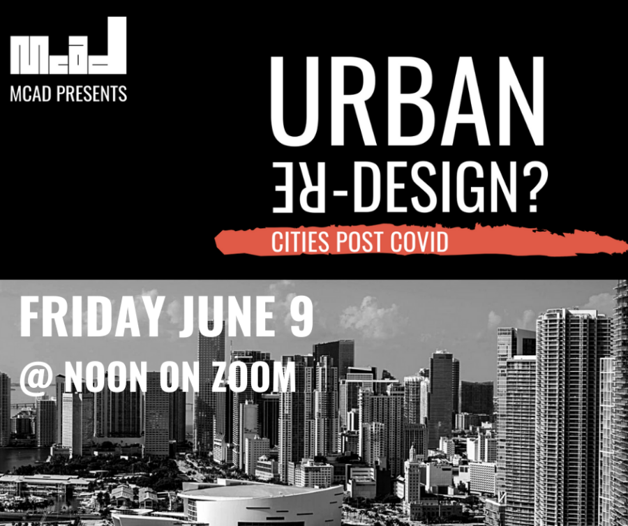 Plusurbia's Juan Mullerat participated in an online panel presented by Miami Center for Architecture & Design (MCAD).Catch it here if you missed it!See more information below:Urban Re-Design? Cities Post COVIDDate: 06/05/2020Time: 12:00 pmDescription:  The Miami Center for Architecture & Design is the place for everyone interested in design and the built environment, with community meeting space and educational programs to enhance public appreciation for architecture and design.MCAD houses flexible exhibit/gallery space that accommodates lectures, seminars and meetings, space for urban lab studios and flex meeting rooms.