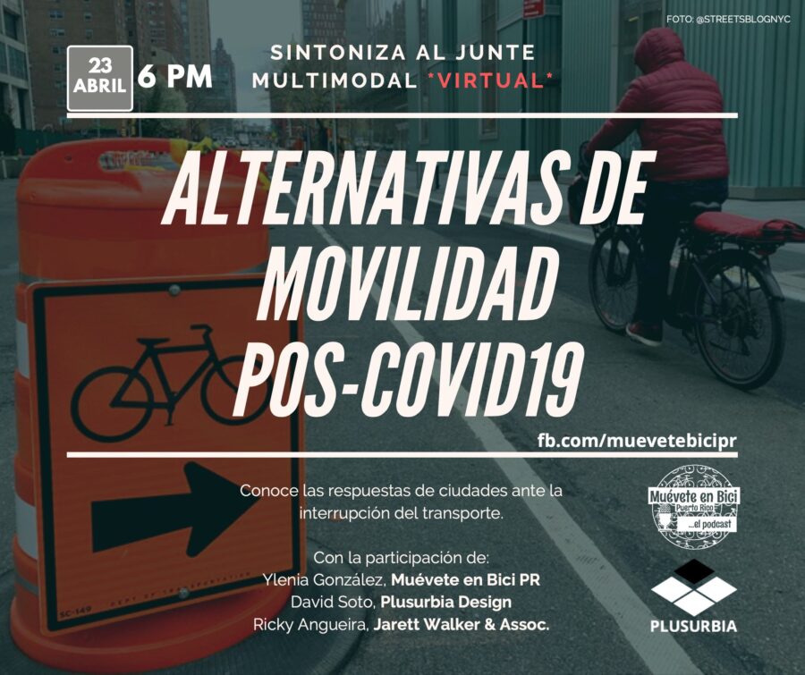 Plusurbia's Puerto Rico Office, in collaboration with Muévete en Bici Puerto Rico, organized the first virtual Junte Multimodal on Thursday, April 23rd, led by the firm's Mobility Leader, David Soto-Padín.The panel discusses the impact of COVID-19 on sustainable transport in Puerto Rico and how cities around the world are responding to this emergency.Panel participants include:Ylenia González, Muévete en Bici PRDavid Soto Padín, Plusurbia DesignRicky Angueira, Jarett Walker & Assoc.To see the discussion on Facebook, click on the following link: Junte Multimodal Virtual No. 1