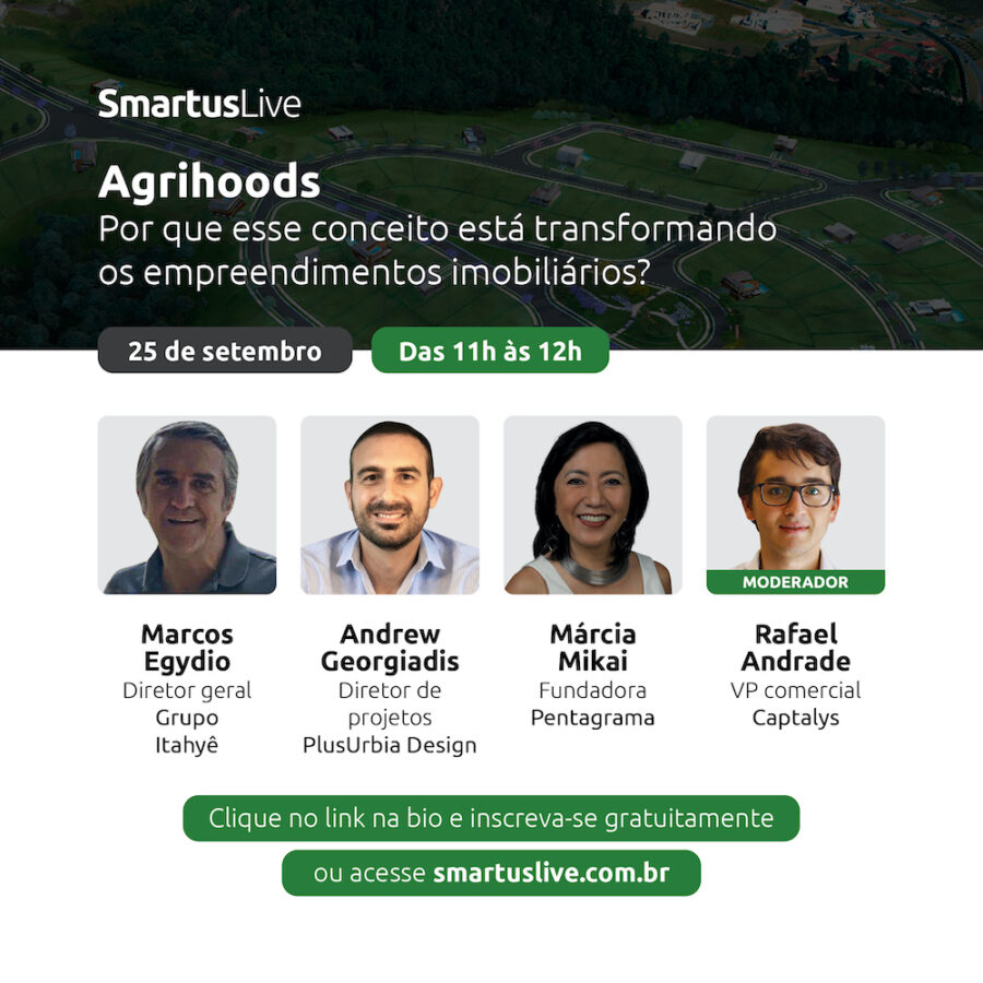 Plusurbia's Andrew Georgiadis participated in the SmartusPlay panel on Agrihoods on Friday, September 25th.Agrihoods: Why is this concept transforming real estate ventures?Listen here!Have you heard about Agrihoods? An agrihood is a kind of residential condominium specially designed to integrate the cultivation of plants and food into the home.To discuss the benefits that the model brings to real estate developments, we will receive 4 special guests:Participants:- Marcos Egydio, General Director, Grupo Itahyê- Andrew Georgiadis, Project Director, PlusUrbia Design- Márcia Mikai, Founder, Pentagrama- Rafael Andrade, Commercial Vice-President, Captalys
