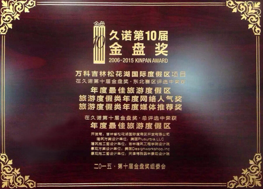 PlusUrbia Design has been honored with the 10th annual KINPAN award as the architectural design team for the Songhua Lake Ski Resort. The Coconut Grove-based studio was the designer of the development named Best Resort and Most Popular Resort Award in China. Organized by Times House magazine and The Architectural Society of China’s Habitat Environment Committee, the Kinpan Awards are among the most influential property design award programs in China. Projects are selected based on quality, aesthetics, habitat environment and value.From the Plaque:The 10th Annual KINPAN award (one of the biggest awards in China for real estate development field)Songhua Lake Ski Resort won Best Resort, Most Popular Resort Award in China.Annual Best Resort in ChinaDevelopment Team: Jilin Songhua international ski resort development companyArchitecture Design Team: Plusurbia Design in U.S.Construction Document Team: Jilin Architecture construction college architecture firmLandscape Design Team:  Designworkshop Inc in U.S.Construction Document for Landscape Team: Tianjin Boya landscape design firm