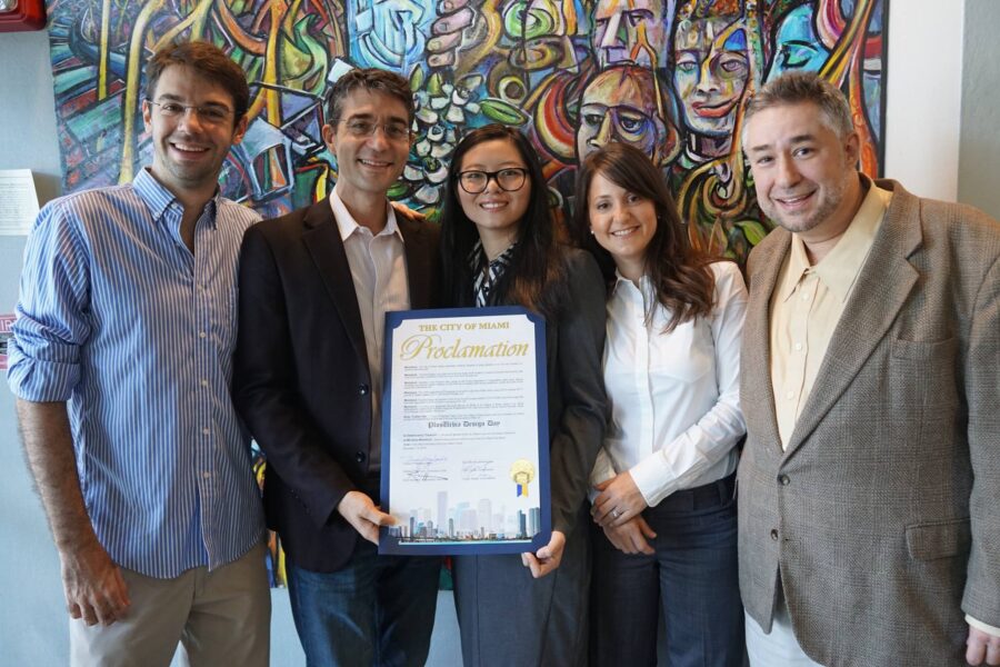 The City of Miami presented a proclamation on Thursday Nov. 19 honoring PlusUrbia Design for hosting the My Calle 8 Forum and contributing 500-plus hours of pro bono services. The Coconut Grove-based studio's entire team produced sample drawings of Calle Ocho as a Complete Street that serves pedestrians, cyclists and public transit equally with automobiles.  PlusUrbia’s vision of calmed, two-way traffic with wide sidewalks captured the imagination of the media, drawing coverage in print, on television, radio, web sites and social media.Link to the City of Miami complete Meeting Agenda: http://egov.ci.miami.fl.us/meetings/2015/11/2848_A_City_Commission_15-11-19_Meeting_Agenda_%28Long%29.pdf